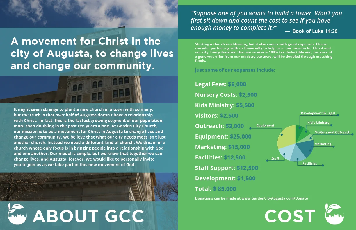 Brochure Design | Garden City Church | About and Cost Page