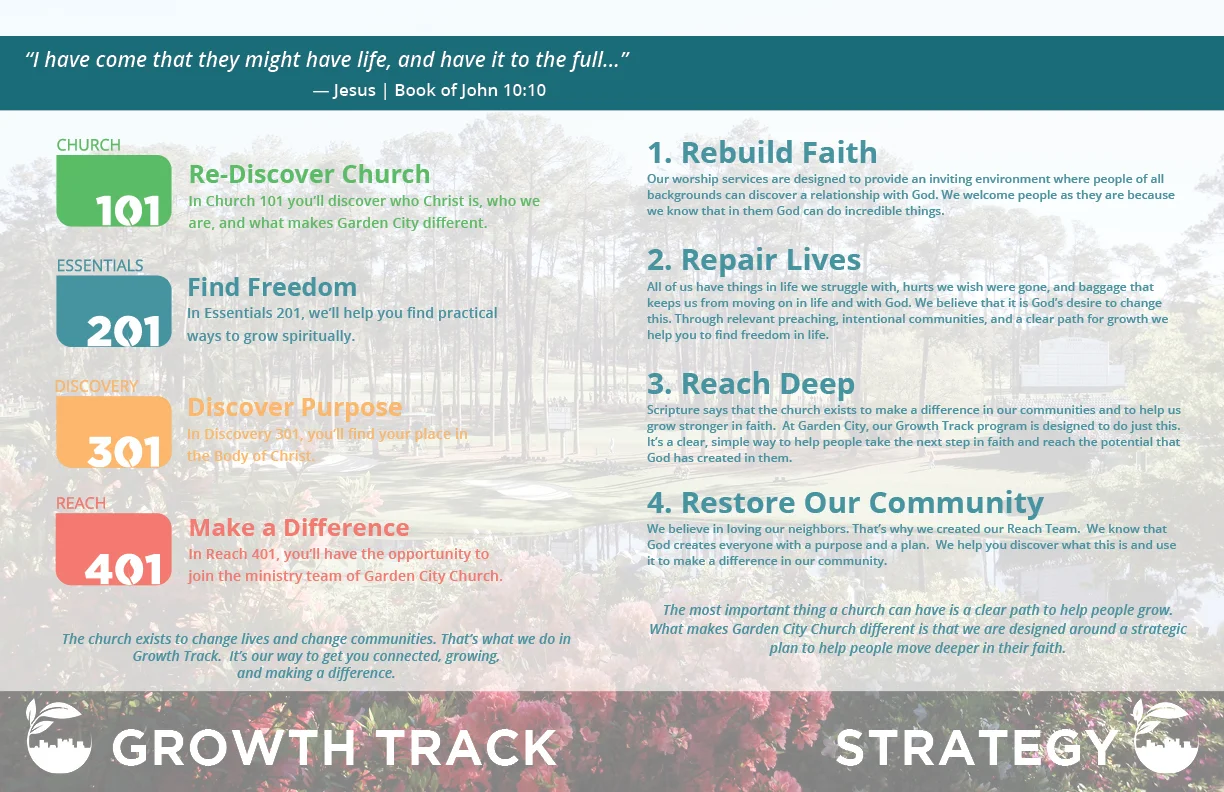 Brochure Design | Garden City Church | Timeline and Infographic Page