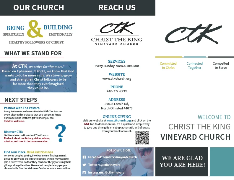 Trifold Bulletin Design | Christ the King Vineyard Church | Inside